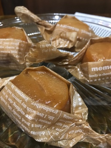 お菓子の由来は昔々、フランスのタタン姉妹がリンゴのタルトを作っている時、ひっくり返してしまい、リンゴがキャラメル状になってしまった。
