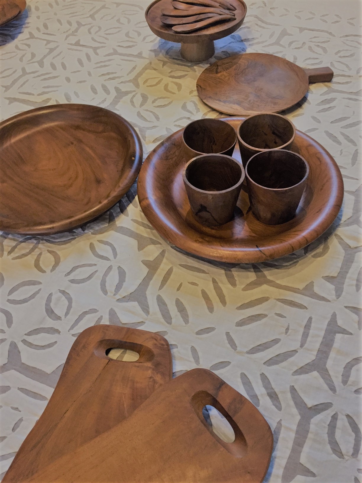 チーク材のお皿 コップ カッティングボード スプーン
